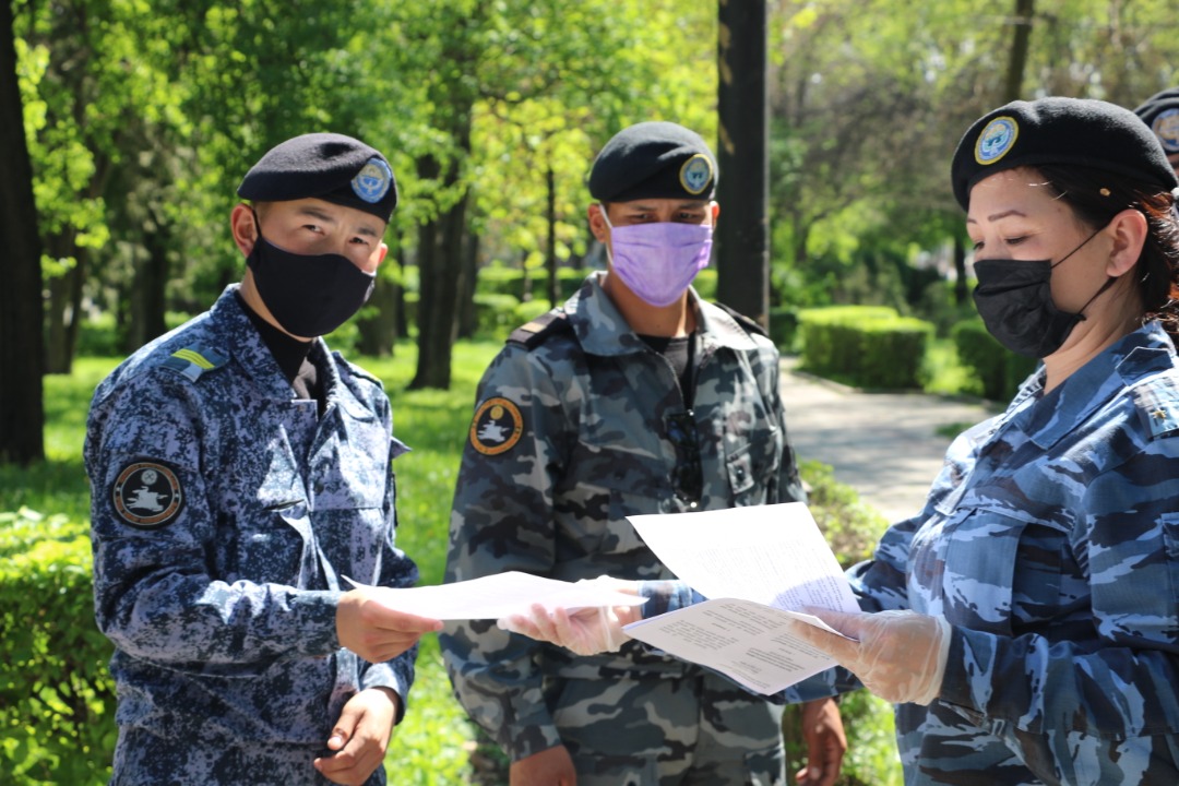 "Полктун жетекчилиги жана батальондордун командирлери тарабынан карантин кирген күндөн тарта филтрациондук посттордо жана жөө кайгуул кызматында кызмат өтөгөн өздүк курамга жарандарга коменданттык сааттын тартиптери тууралуу түшүндүрүү иштерин жүргүзүшүүдө. Анда этияттык, сактык чараларын катуу сактоо, ошондой эле коронавирус илдетине каршы туруу жана алдын алуу максатында күн сайын нускамалар өткөрүлүп келет. Мындай иш-чаралар Полктун аймактардагы бөлүктөрүндө да жүргүзүлүүдө.