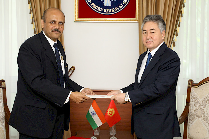 Бүгүн, 29-августта Индиянын Кыргызстандагы элчиси Арун Кумар Чаттерджи Кыргызстандын тышкы иштер министри Жээнбек Кулубаевге ишеним кагазынын көчүрмөсүн тапшырды. Бул тууралуу КР ТИМден билдиришти.