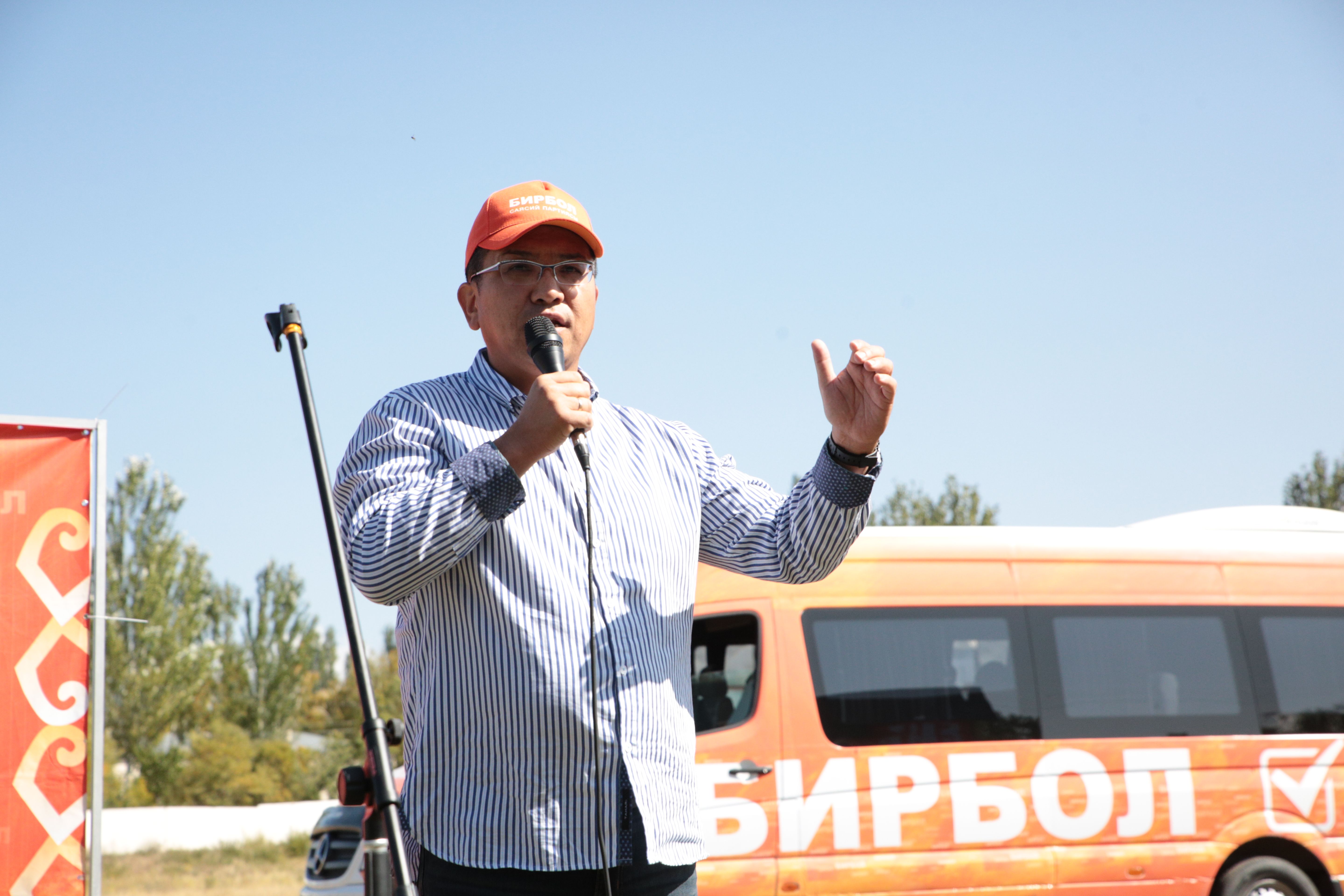 “Бир Бол” партиясынан талапкер Нурлан Шерипов чогулган элди Кыргызстандын туризм тармагын өнүктүрүү боюнча партиянын программасы менен тааныштырды.