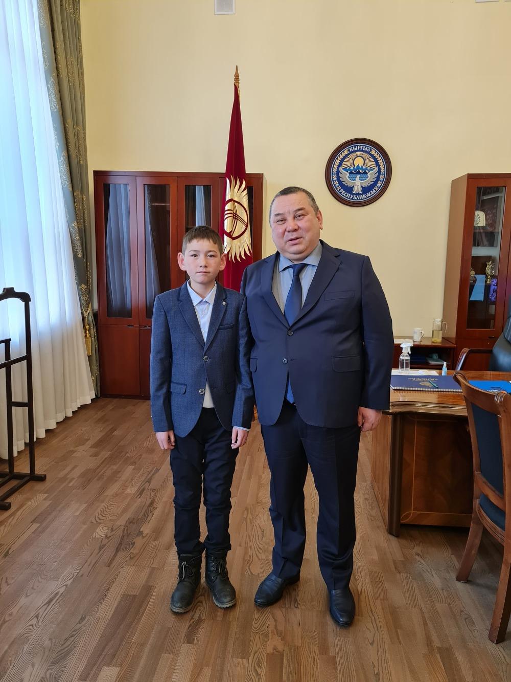 Интернет жылдызына айланган Байзак Кубанычбек уулун Бишкек шаарынын мэринин милдетин аткаруучу Балбак Түлөбаев кабыл алды. Бул тууралуу Түлөбаев социалдык тармактагы баракчасына жазып чыкты.