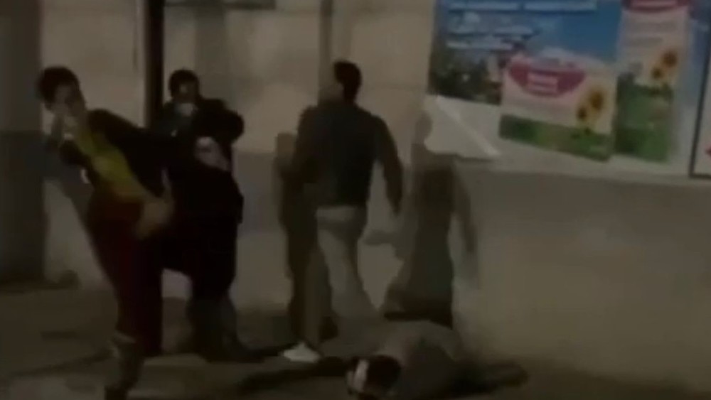 Интернет айдыңында аялды тепкилеп сабаган эркек кишинин видеосу таркады. Видеодо көрүнгөндөй белгисиз эркек киши жерде жаткан аялды сөгүп, тээп жиберген. Эки адам токтотууга аракет кылышканы менен аларды жакын жолоткон эмес.