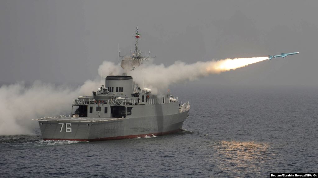 Ирандын мамлекеттик телеканалдары «Kонарак» катеринин экипажы бута менен болгон аралыкты сактабаганын, жыйынтыгында ага ракета тийгенин кабарлашты.