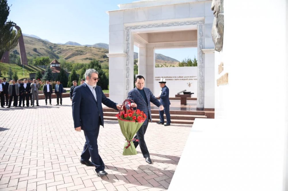 Маалыматка ылайык, Иран ИИМнин башчысы жана Кыргызстандын ИИМ министри 1916-жылкы каргашалуу окуяларда курман болгондордун мемориалына, саясий репрессиялардын курмандыктарынын эстелик-мемориалына гүл коюшту.