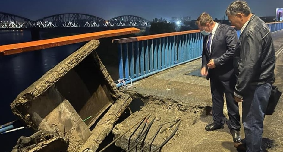 Чыгыш-Казакстан облусундагы Семей шаарында 9-август күнү кечинде Иртыш дарыясына орнотулган көпүрөнүн бир плитасы менен таянычы кулап түштү. Буга байланыштуу көпүрөдөгү жол жабылды.
