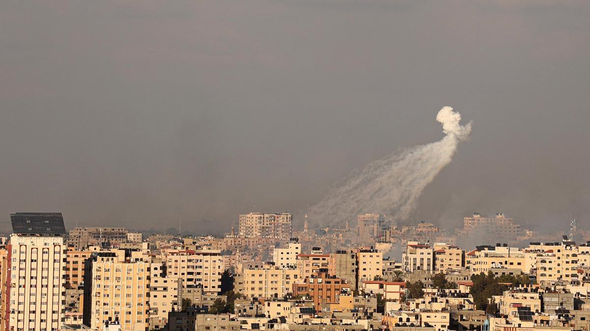 Израилдин аба соккуларынан улам Газа шаарынын үстүнөн абада ак түтүн көтөрүлгөнүн көрүүгө болот. Буга чейин Палестина ТИМи Израиль тыюу салынган фосфорлуу снаряд колдонгонун билдирген.