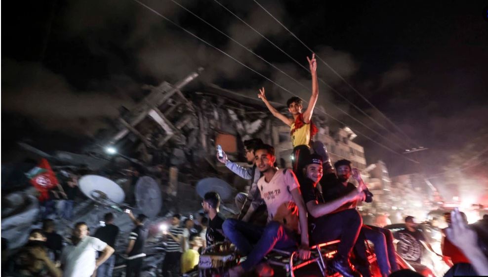 11 күнгө созулган Израил менен ХАМАС согушкерлеринин ок атышууну токтошуна байланыштуу миңдеген палестиндиктер көчөгө жеңишти майрамдоо үчүн чыгышты. Алар Палестинанын жана ХАМАС тобунун желектерин көтөрүп, таттуу таратып, асманга фейерверктерди аттырышты.