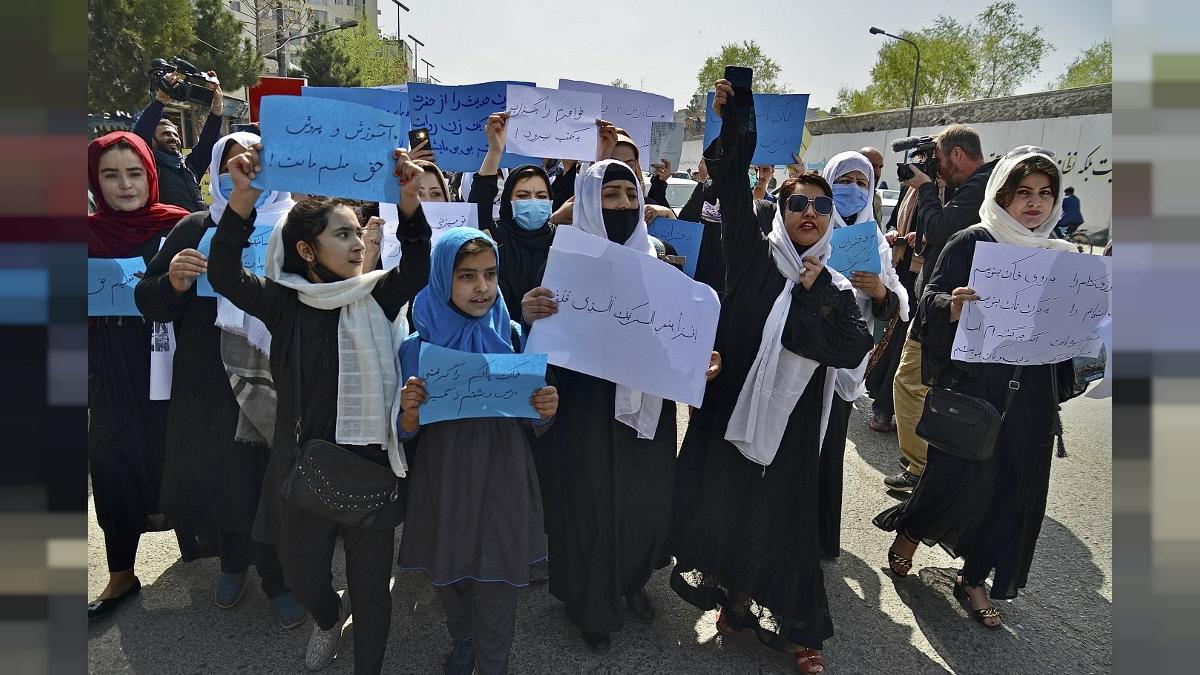 Кабулда жыйырма чакты аялдан турган топ мектептердин кыздар үчүн ачылышын талап кылып нааразылык акциясына чыгышты.