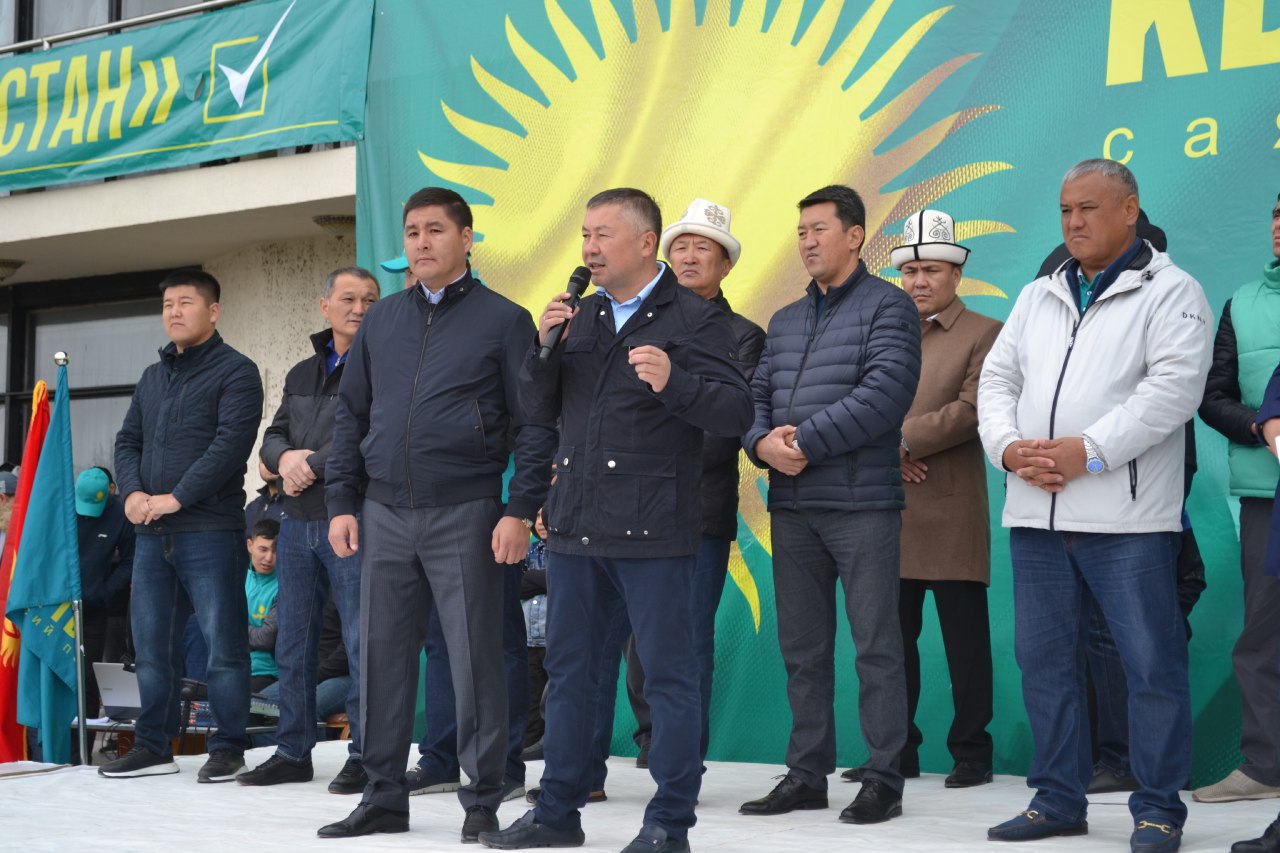 “Биздин жарандар өз үйүндө болуп, ата-энесинин жанында жашап, мамлекеттин жыргалчылыгы үчүн иштеши керек. Өлкөдө партиялар көп, бирок алардын бири дагы биздин партиядай көп жумушчу орундарын түзгөн жок деп жоопкерчиликтүү түрдө айта алам. “Кыргызстан” партиясы реалдуу түрдө өндүрүшкө жана өнөр-жайдын өнүгүшүнө салым кошум келе жатат. Мына биздин партиялаштар өлкө боюнча жалпы 100 ишкана курушту. Мындай адамдардын “Кыргызстан” партиясынын курамында бар экендиги мени кубандырат. Ийгиликтүү талапкерлер менен биргеликте мамлекеттин экономикасын көтөрүүгө Кыргызстанда бардык мүмкүнчүлүктөр бар. Себеби ийгиликтүү адамдар гана ийгиликтүү мамлекетти кура алат. Ошондуктан мен жаратмандардын партиясын колдойт сиздерге ишенем”, – деди партия лидери.