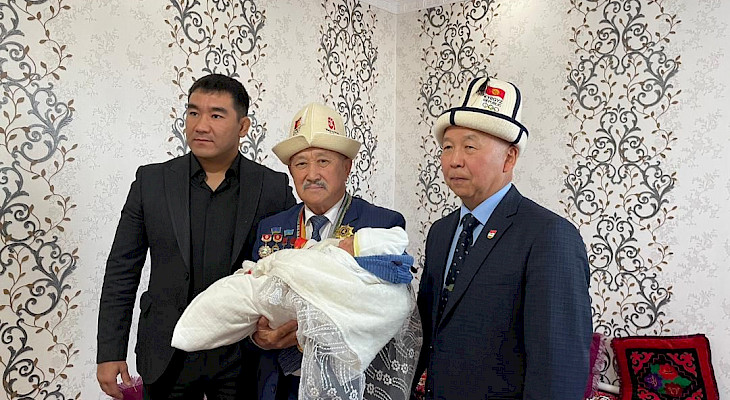 1980-жылкы Олимпиада оюндарынын жана дүйнөнүн төрт жолку чемпиону Каныбек Осмоналиев Баткендин Кызыл-Кыя шаарында Кыргызстандын 7-миллионунчу жараны болуп төрөлгөн Жакшылыктын үй-бүлөсү менен жолукту.