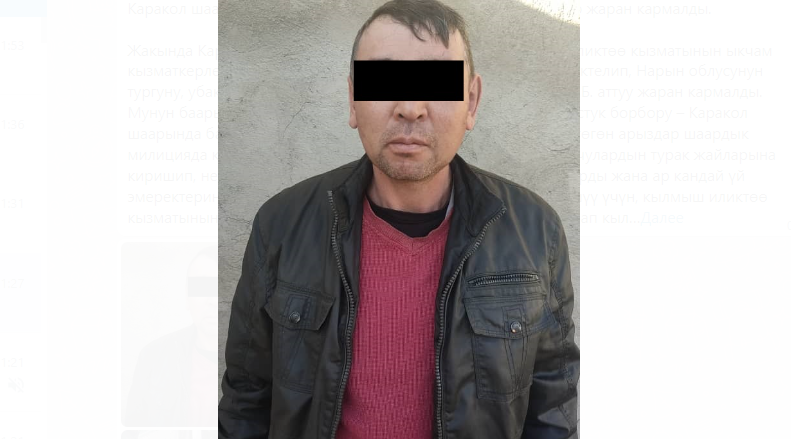 Учурда, кылмышка шектүү жарандын Каракол шаарынын жана коңшу райондордун аймагында башка ушул өндү мыйзамсыз аракеттерге катыштыгын аныктоо боюнча тергөө амалдары жүргүзүлүүдө.