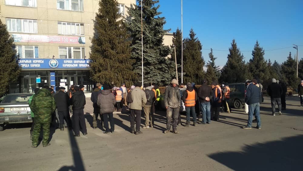 Ысык-Көл облусунун Каракол шаарында «Тазалык» муниципалдык ишканасынын кызматкерлери нааразычылык акциясына чыгышты.