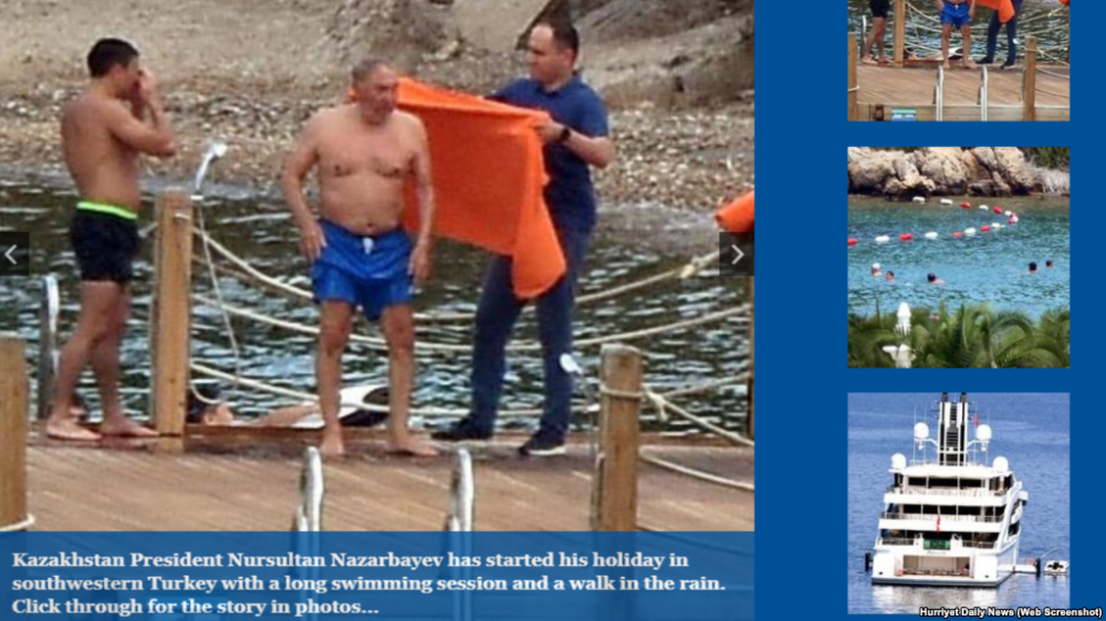 Түркиялык Нurriyet Daily News вебсайты “казак президенти Нурсултан Назарбаев кезектеги эс алуусун Бодрумда өткөрүп жатканы” тууралуу сүрөттөрдү жарыялады. Көп узабай бул сайт Казакстанда ачылбай калды.
