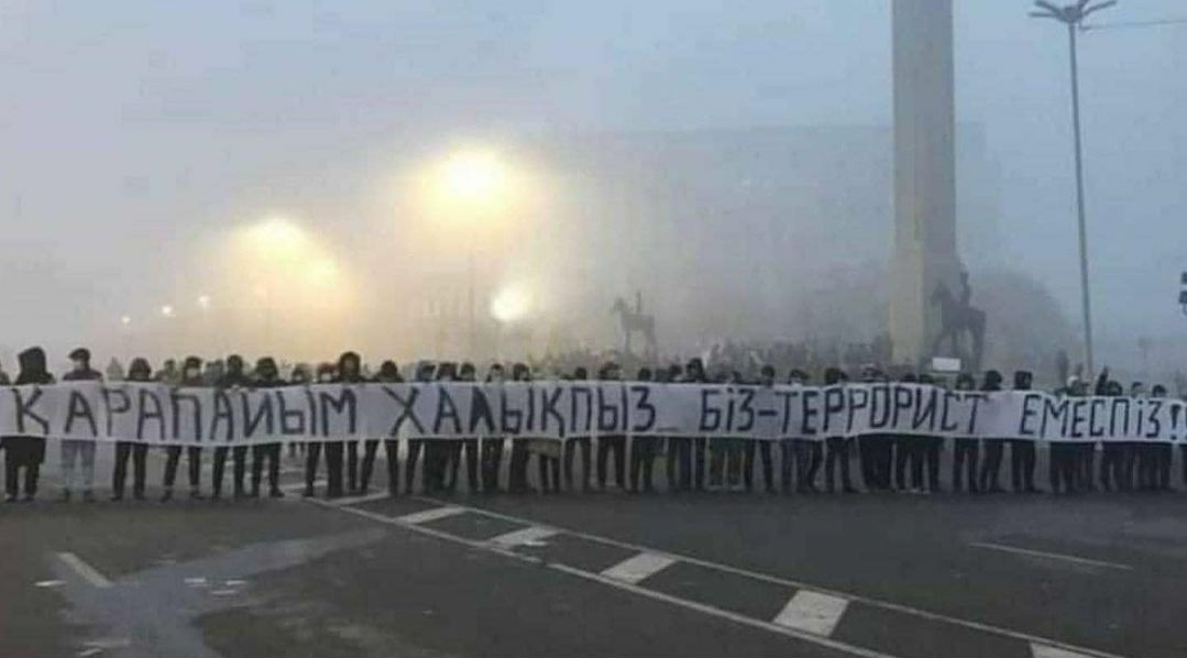 Эске салсак, Казакстандын президенти Касым-Жомарт Токаев митингге чыккан элди "Куралчан террордук топ", - деп атаган.