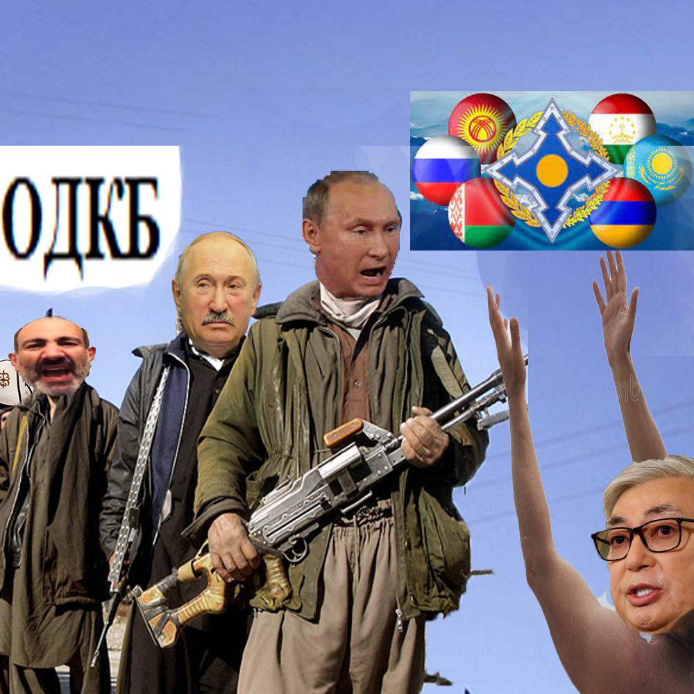 Токаев ЖККУнун алкагында жардам көрсөтүп жатканы үчүн Армениянын премьер-министрине, Орусиянын, Кыргызстандын, Беларустун жана Тажикстандын президенттерине ыраазычылык билдирди: “Жашырынып жаткан жоочулардын топтору даярдыктарын мамлекет кантип “уктап” билбей калганынын сөзсүз аңдашыбыз керек. Алматынын өзүндө эле 20 миң бандит кол салды. Алардын дээрлик бардык облустардагы аскердик, административдик жана социалдык объектилерге карата акциялары так даярдыкта жүргөнүн, башкарылып турганын, жогорку чабуулдук даярдыкта жана зомбулук менен жүргөнүн көрсөтүүдө. Жоочулардан сырткары идеологиялык диверсия, дезинформация же “фейктер” менен алектенген же элдин маанайын манупуляциялаган адистер иштеди. Сыягы, даярдык жана жетектөө менен бирдиктүү командалык пунктта жүргүзүлгөн”,-деп айткан Токаев.