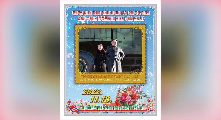 Түндүк Корея мамлекет башчысы Ким Чен Ындын кызынын сүрөтү түшүрүлгөн маркалардын сериясын чыгарды. Алар өткөн жылдын ноябрында Хвасон-17 континенттер аралык баллистикалык ракетасын сыноого арналган. Маркалар аталган өлкөнүн почтасынын сайтында жарыяланганын Korea Times билдирди.