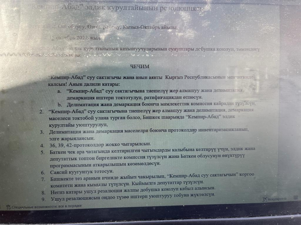 Бүгүн, 15-октябрда Өзгөн районунун Кызыл-Октябрь айылында Кемпир-Абад суу сактагычынын маселеси боюнча элдик курултай өттү.