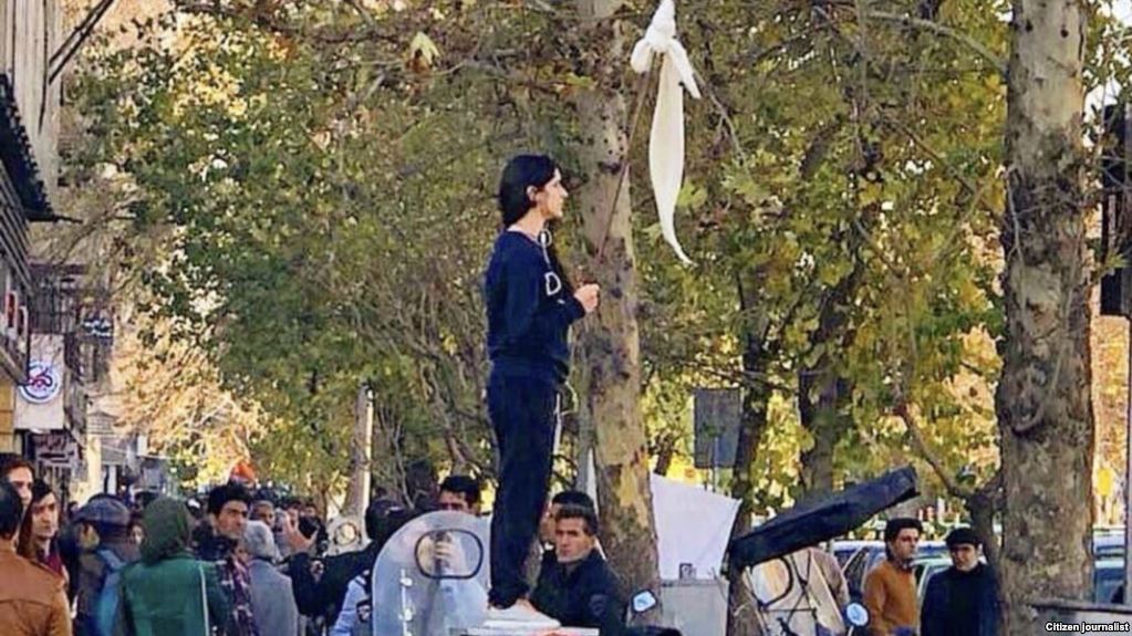 Тегерандын Энгелаб (Революция) көчөсүндө жоолуксуз турган аялдын (аты белгисиз) видеосу Интернетке 27-январда тараган. Видеодо аял ак желегин булгалоо менен милдеттүү түрдө хиджаб кийүү талабына каршы чыккан.