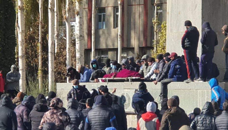 26-ноябрь күнү таң эрте Хорог жана ага жакын райондордун тургундары Тоолуу-Бадахшан автономдуу облусунун администрациясынын алдында нааразылык акцияларын улантышты. Митингчилер түндө мэриянын имаратынын жанындагы аянтта түнөшкөн. Алар 29 жаштагы Гулбиддин Зиёбековду өлтүргөндөрду кармап, кылмыш жоопкерчилигине тартууну талап кылышууда. Кечээ нааразы топ маркумдун сөөгүн акимчиликтин имаратына алып келишкен.
