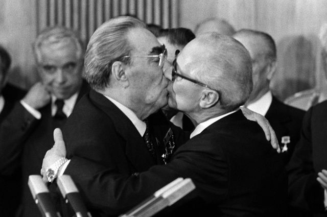 Эң атактуу өбүшүү Германия демократиялуу республикасынын жетекчиси Эрихом Хоннекер менен КПСС Борбордук комитетинин Генералдык секретары Леонид Ильич Брежневдин ортосунда болгон. Бул достуктун актысы болгон сүрөттөмө, ал эмес таланттуу художник Дмитрий Врубел тарабынан Берлин дубалына кооздолуп тартылган. Мындай «достук өбүшүү» Берлин дубалынын урашына символ болуп калган.