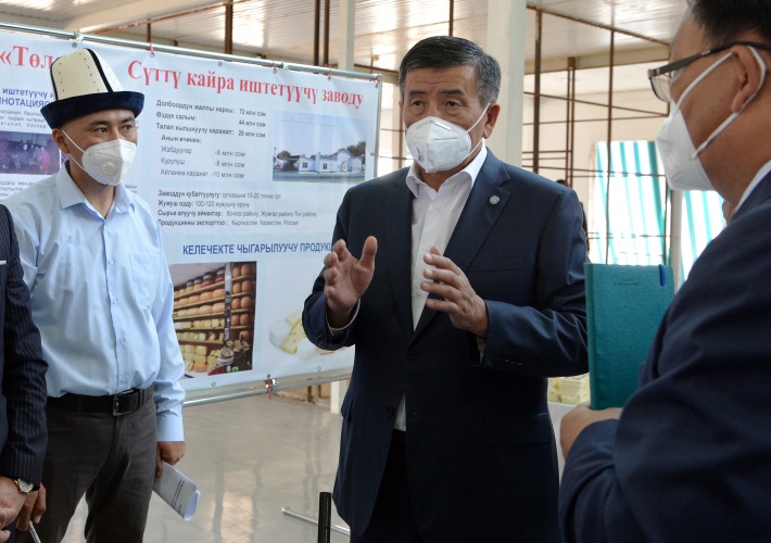 Кыргыз Республикасынын Президенти Сооронбай Жээнбеков бүгүн, 19-августта, Нарын облусуна болгон жумушчу сапарынын алкагында Кочкор районундагы сүт иштетүүчү ишкананын ишмердиги менен таанышты.