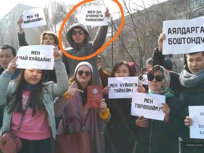 "Бүгүнкү аял затынын майрамын бүтүн дүйнө белгилеген күн, көгүш жана кырмызы адашкандар элдин маанайын түшүрүп мени аябай чочутту. Бийликке сын пикир айтуу же жарандардын укугун коргоо деген такыр башка маселелер. Эртеңки күн кандай болот урматтуу кыргыз элим? Үй-бүлө баалулуктарын кийинки муун кантип кабылдайт? Ар бир коомдогу ачык кубулуштар эртели-кечпи сөзсүз өзүнүн түшүмүн берет. Жакшы жакка үндөгөн кыймылдар элдин өнүгүп өсүшүнө, ал эми үй-бүлө баалуулуктарын бузуу үчүн жасалган кыймылдар сөзсүз өзүнүн кесепетин жана зыянын берет. Орто Азия мамлекеттеринин арасынан биздин өлкөдө гана аял киши президент болду. Кыргызда "Бейиш эненин таман астында" “Аял бул үйдүн куту", "Кыздын кырк чачы улуу", “Аял жакшы - эр жакшы, вазир жакшы - хан жакшы" - деп аял затын ар дайым сый урмат менен баалап келген эл.