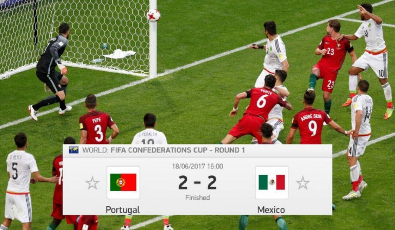 Орусияда өтүп жаткан Конфедерациялар Кубогунда "А" тайпасында экинчи оюн Казань шаарында орун алды. Анда Европа чемпиону Португалия Мексика менен 18-июнда кез келди.