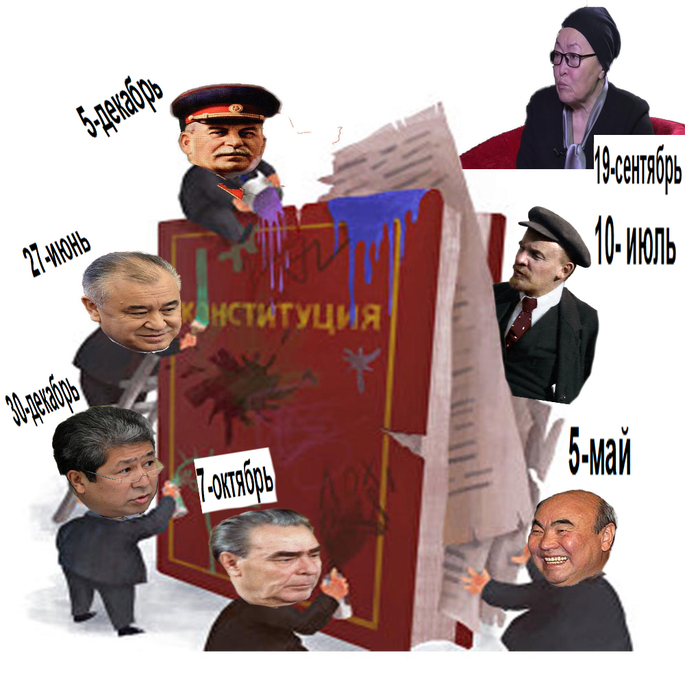 Кыргыздар эң узакка 41 жыл Конституция күнүн 5-декабрда белгилешкен. Андан соң 28 жыл 5-майда белгилеп келатышат. Эң аз 18 жыл 7-октябрды белгилеп калышты. Азыр улам жаңы Конституциялар кабыл алынып жатат. Кокустан, совет бийлиги убагындай жаңы Конституция кабыл алынган күн Конституция күнү катары майрамдала берсе: 11-апрель, 27-июнь, 30-декабрь, 8-ноябрь, 19-сентябрь деп бул күндү майрамдай берип баш адашмак:
