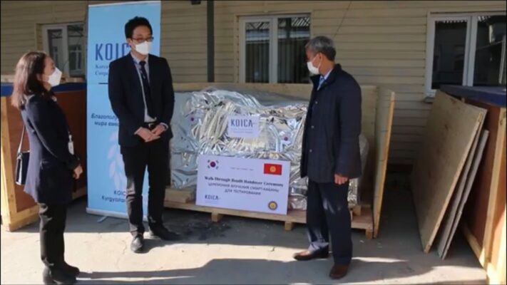 Ошондой эле Кореянын эл аралык KOICA уюмунун Бишкектеги кеңсесинин жардамы менен Кореядан Кыргызстандын лабораториялык кызматына биоматериал чогултуу үчүн 5 смарт-кабина гуманитардык жардам катары берилген.