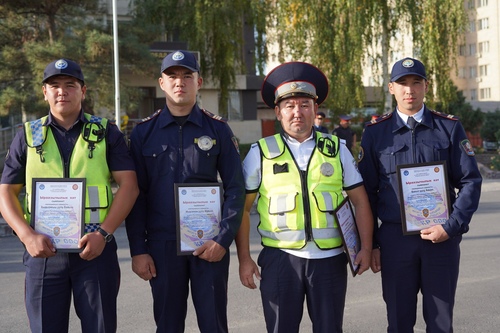 Ички иштер министрлигинин Жол кыймылынын коопсуздугун камсыздоо башкы башкармалыгынын жетекчиси, милициянын полковниги Жеңишбек Жоробеков кызматында өзгөчөлөнгөн кызматкерлерди сыйлады.