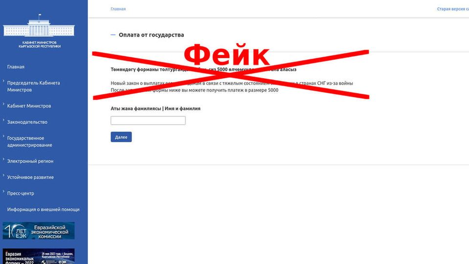 Министрлик билдиргендей, маалыматка фейк шилтеме тиркелген, жана ал министрлер кабинетинин расмий сайтына тиешеси жок.