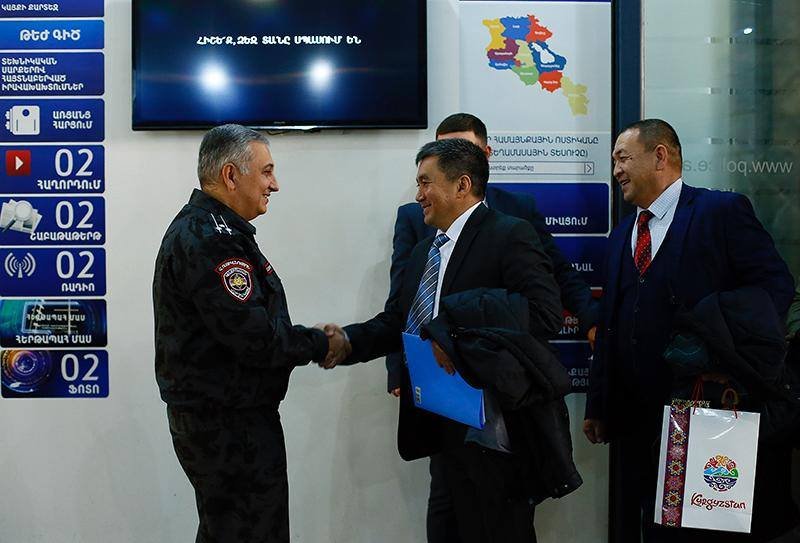 Ошондой эле, Кыргызстандын Ички иштер министрлигинин делегациясын Армения Республикасынын полициясынын маалымат жана коомчулук менен байланышуу боюнча башкармалыгынын башчысы, полициянын полковниги Ашот Агаронян тосуп алды. Кыргызстандан келген коноктор менен биргеликте жалпыга маалымдоо каражаттары жана коомчулук менен байланышты бекемдөө үчүн жүргүзүлүп жаткан иш-чаралар, социалдык тармактар менен иштөө, ЖМК менен иштөөдө ачык-айкындуулукту камсыздоо талкууланды. Андан сырткары Маалымат жана Комчулук менен байланышуу боюнча башкармалыктын ишмердүүлүгү менен таанышып чыгышты. Ушуга эле катар, конокторду полициянын Коомдук тартипти сактоо башкармалыгынын башчысы Георгий Айвазян кабыл алды. Тараптар коомдук коопсуздукту жана коомдук тартипти камсыздоо чөйрөсүндө эки өлкөнүн укук коргоо органдарынын кызматтарынын ишмердүүлүгүнө байланыштуу маселелерди талкуулашты.