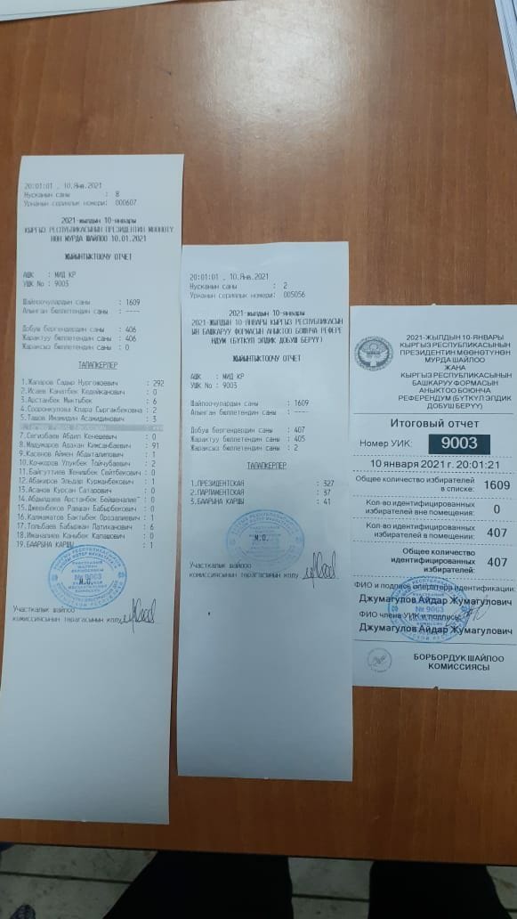 Маалыматка ылайык, биринчи орунда президенттикке талапкер Садыр Жапаров 292 добуш менен алдынкы саптан орун алган. Андан соң Адахан Мадумаров 91 добуш менен экинчиликте келе жатат. Ал эми 6 добуштан алган Мыктыбек Арстанбек менен Бабыржан Төлбаев үчүнчү орунду тең бөлүшүштү.