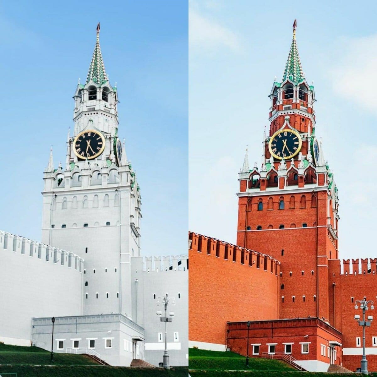 Кремлди XVII — XVIII кылымдарда өзүнүн фортификациялык күчүн жоготкондо гана боёну чечишет. Москвадагы кремлден тышкары Ростов, Казань, Зарайсктагы чептерди да боёго өтүшкөн. Эмнеге боёшот? — Анткени мода болчу. Бирок, бул жерде Кремль ар дайыма эле ак түстө болгон деп айтуу кыйын, себеби ар кандай маараке, майрамдарда анын түсүн майрамдык маанайга карата да өзгөртүп турушкан.