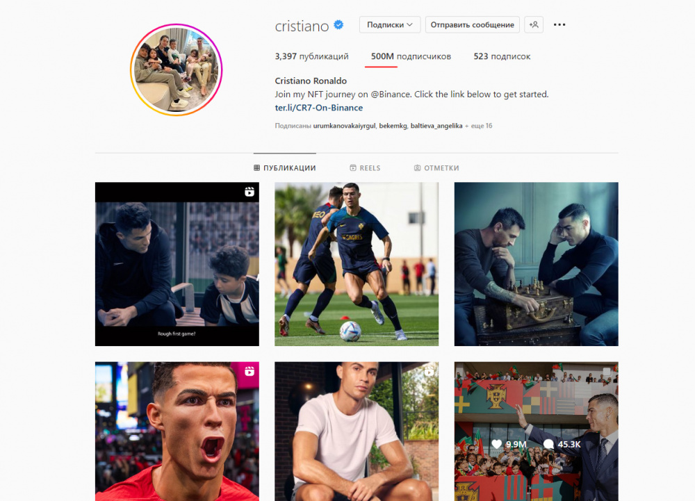 Криштиану Роналду Инстаграмдагы катталуууларынын саны 500 миллиондон ашкан алгачкы адам болду.