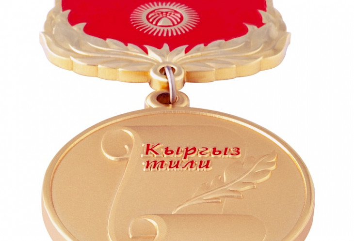 Президенттин алдындагы мамлекеттик тил боюнча улуттук комиссиясынын чечимине ылайык, төш белги мамлекеттик тилди өркүндөтүүгө жана тил саясатын өркүндөтүүгө кошкон зор салымы үчүн берилди.
