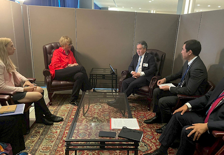 Нью-Йорк шаарында БУУнун Башкы ассамблеясынын 77-сессиясынын алкагында Кыргызстандын тышкы иштер министри Жээнбек Кулубаев менен ЕККУнун башкы катчысы Хельга Мария Шмиддин эки тараптуу жолугушуусу болуп өттү.