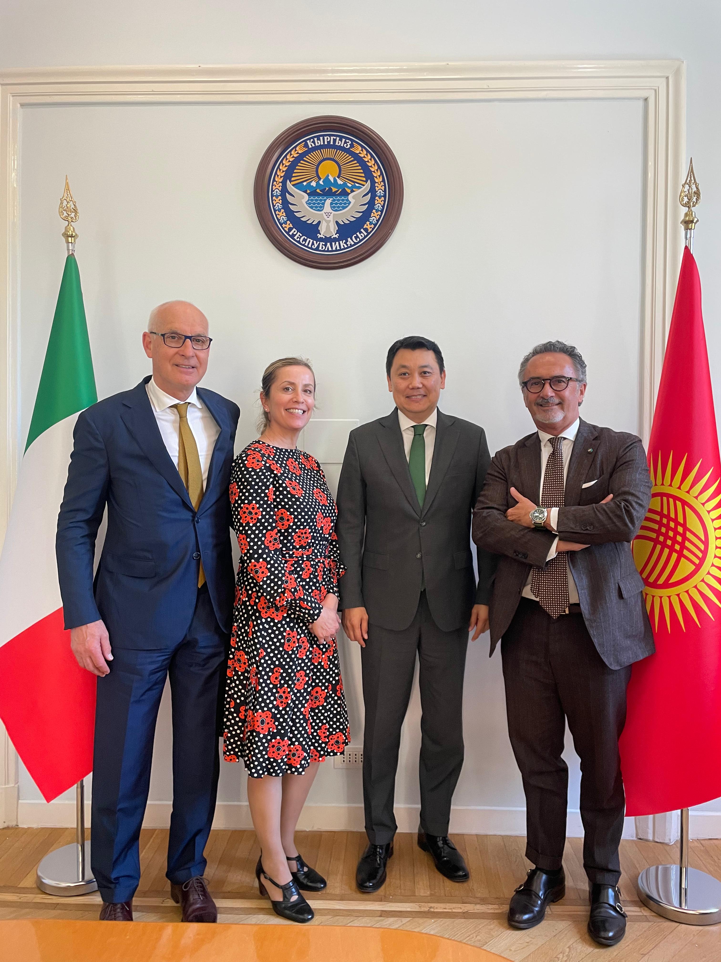 23-майда Кыргызстандын Италиядагы элчиси Таалай Базарбаев «Sistema Moda Italia» италиялык кийим жана текстиль өндүрүүчүлөр ассоциациясынын президенти Серджио Тамборини менен жолугушту.