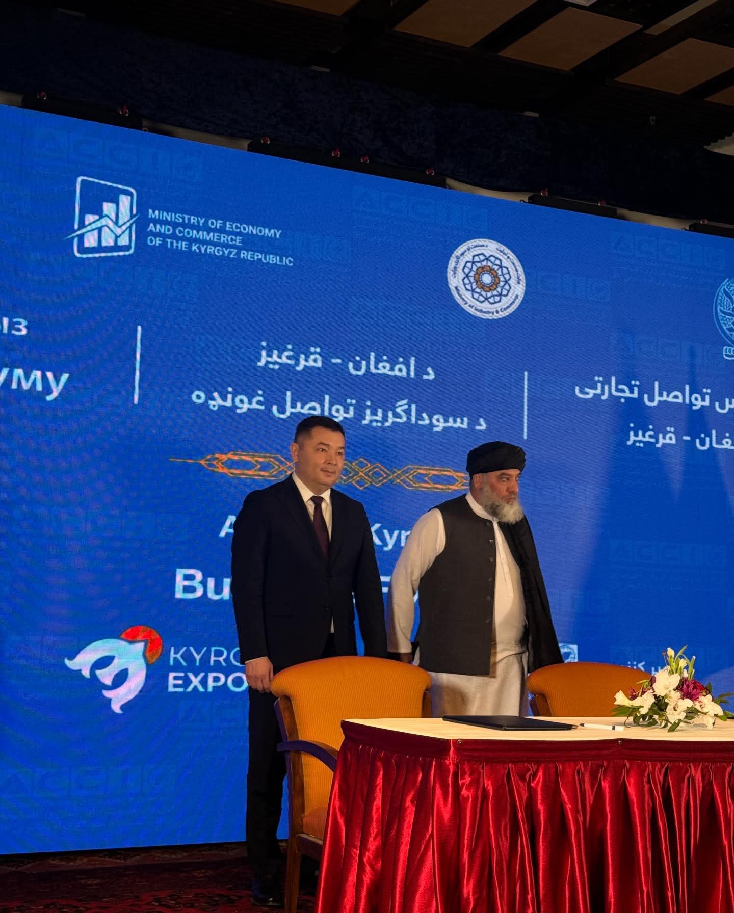 КР делегациясын ЭКМ Бакыт Сыдыков жетектеди. Министрдин иш сапарынын алкагында Кабул шаарында Кыргызстандын Соода үйү ачылып, эки тараптуу жолугушуулар өткөрүлдү. Анда соода-экономикалык кызматташууну кеңейтүү, экспорттук кызматташтыкты өнүктүрүү жана биргелешкен долбоорлорду ишке ашыруу маселелери талкууланды.