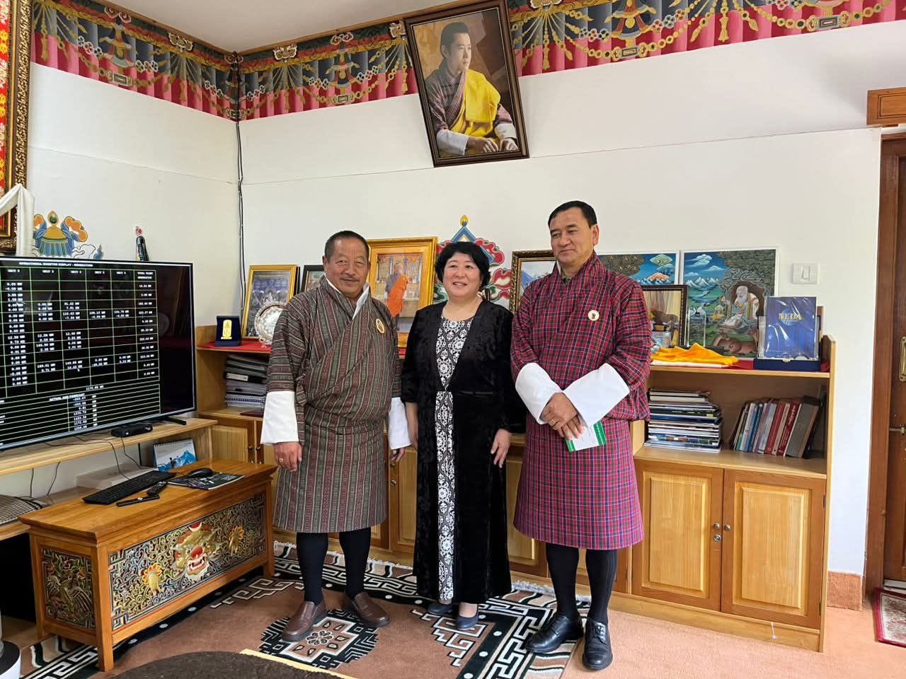 Бутандын энергетика жана жаратылыш ресурстары министри Гем Церинг менен болгон жолугушуунун жүрүшүндө гидроэнергетика, тоо экосистемаларын сактоо, анын ичинде ак илбирсти коргоо чөйрөсүндөгү кызматташтыктын келечеги, ошондой эле тоо калкынын климаттын өзгөрүшүнүн кесепеттерине карата аярлуулугун төмөндөтүү чаралары талкууланды.