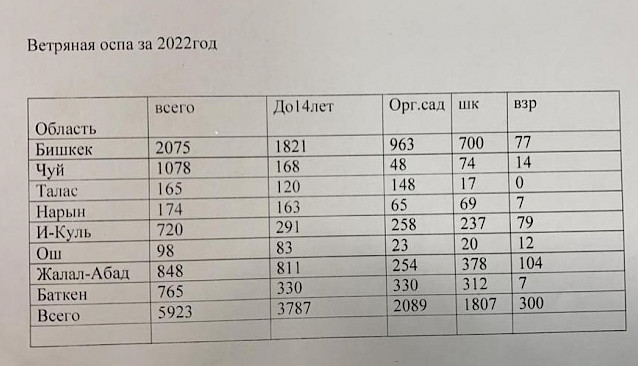 Ведомствонун маалыматы боюнча, 2022-жылдын 4 айында суу чечек оорусунун 7495 учуру катталса, ал эми 2021-жылдын 4 айында 972 учуру катталган.