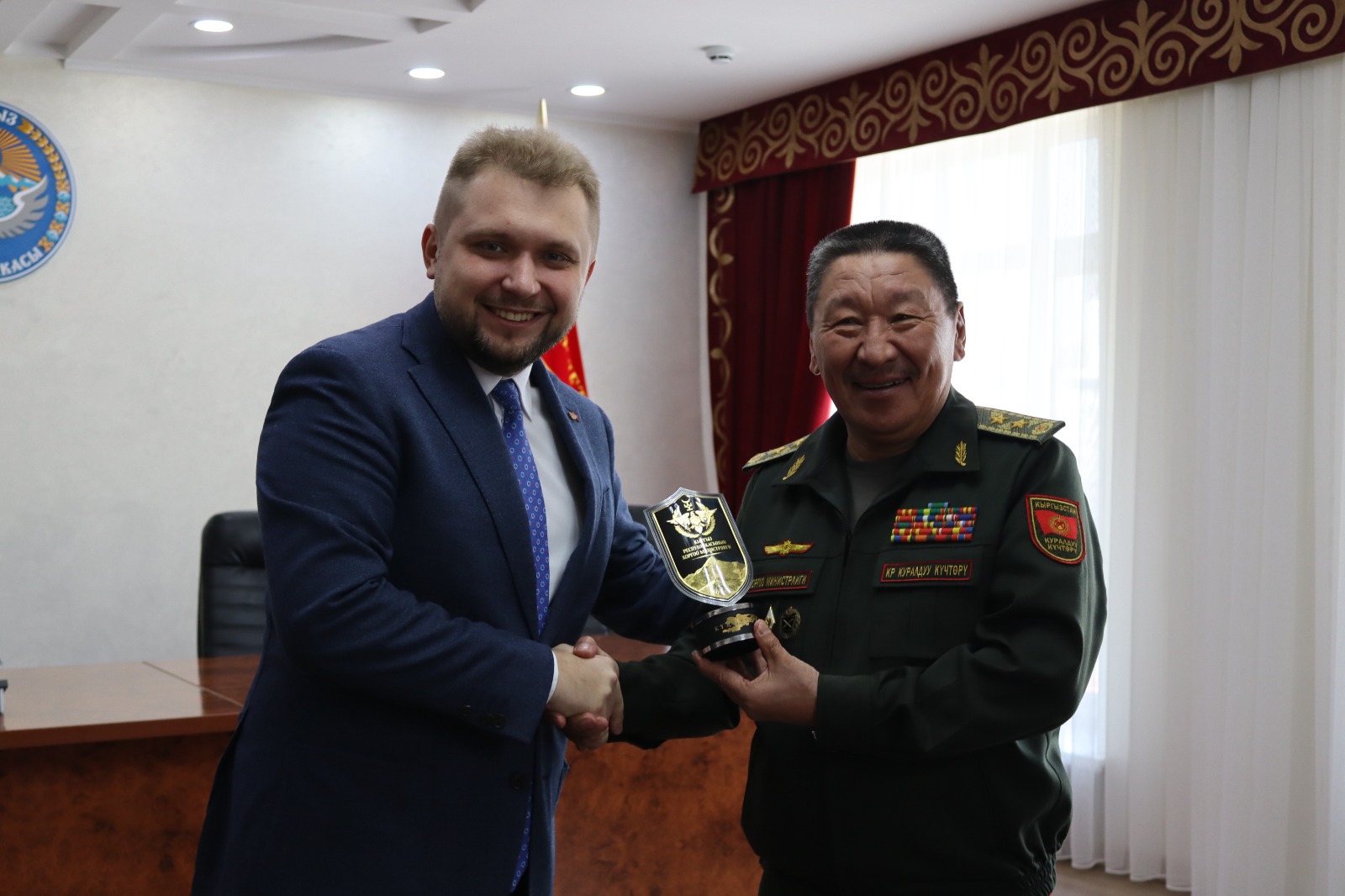 Бүгүн, 2025-жылдын 3-апрелинде, Кыргыз Республикасынын Коргоо министрлигинин Борбордук аппаратынын жыйын залында Кыргыз Республикасынын коргоо министри, генерал-лейтенант Бактыбек Бекболотов «Жеңиш 9/45» кыймылынын уюштуруу комитетинин делегациясы менен жолугушту.