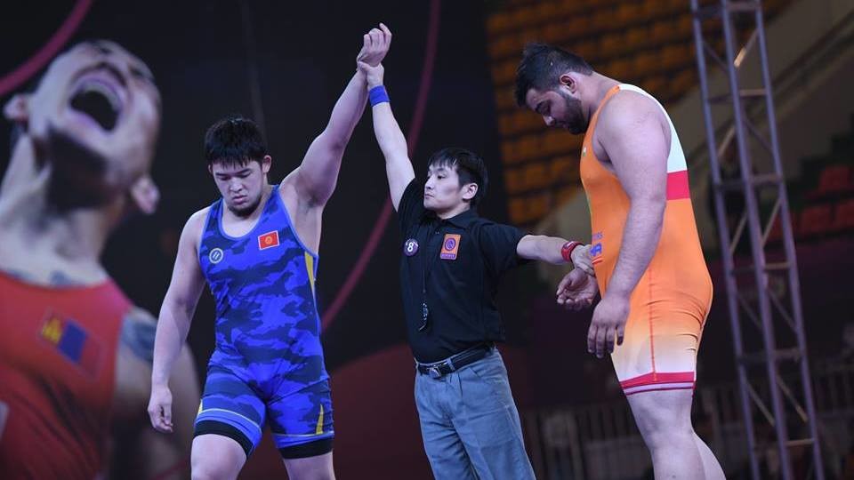 Эске салсак, кечээ Акжол Махмудов үчүнчү ирет грек-рим күрөшү боюнча Азиянын чемпиону болду.