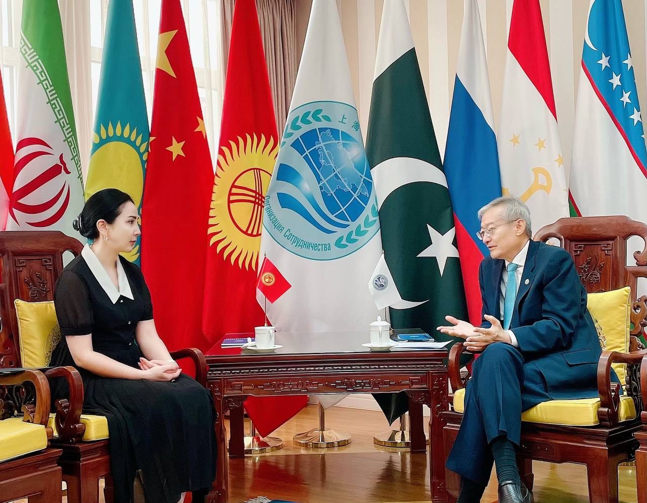 Бүгүн, 6-июлда Кыргызстандын Кытайдагы элчиси Актилек Мусаева Шанхай Кызматташтык Уюмунун (ШКУ) башкы катчысы Чжан Мин менен жолугушту.