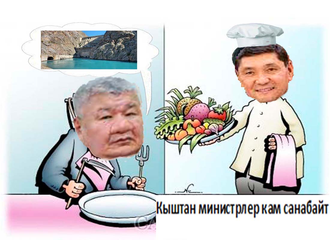 Энергетика министри Ибраев менен айыл чарба министри чалчаңдашып чучук чайнап отурушат. Союз убагында Кыргызстан ГЭСтер менен сыймыктанчу, суу сактагычта 15-16 Млрд.Куб суу дайым турчу. Аскар Акаев президент болгону жүрүп-жүрүп суу 12 Млрд.Кубга түшкөндө элдин эси эңгиреп калган. Атамбаевдин жолдош-жоролору ГЭСтин суусун өзбектерге көрсөтпөй сатышып 11 Млрд.Кубга түшкөндө аны жамандабаган киши калбай калган. 1 Млрд.Куб сууну ажыдар соруп кеттиби дешип. Сооронбай Жээнбеков президент болгону суунун көлөмүн жогорулатып 12 Млрд.Кубга көтөрүлгөн. Эми Токтогул ГЭСинде суунун көлөмү канча экенин айтууга ооз барбайт. 8 Млрд.Кубга түшкөн...