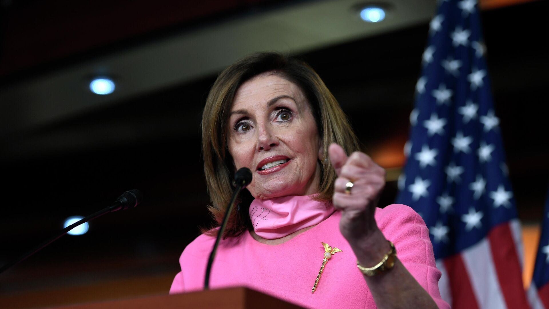 Пелоси өз сөзүндө республикачыларды сынга алып, климаттык кризис боюнча тараптардын ортосунда пикир келишпестиктер бар экенин айтканы белгиленген. Конференцияда ал Республикалык партиянын мүчөлөрүн климаттык кризисти талкуулоо зарылдыгын четке какты деп айыптады.