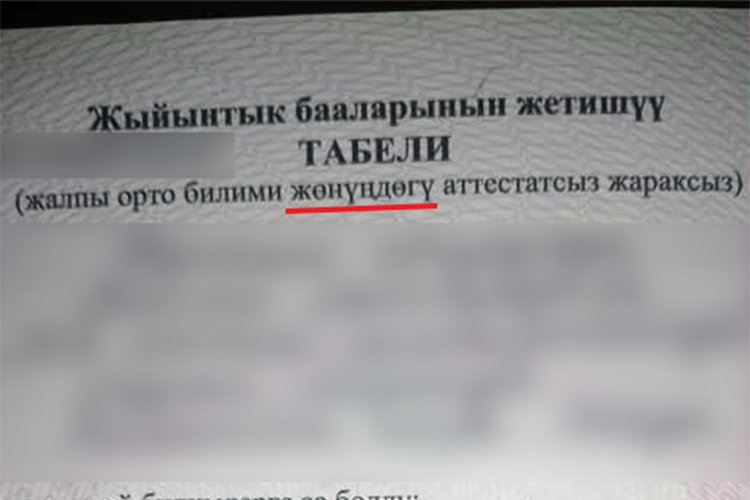Орто мектепти аяктагандыгы тууралуу аттестат ката басылып чыкты. Бул тууралуу окурмандар билдирген.
