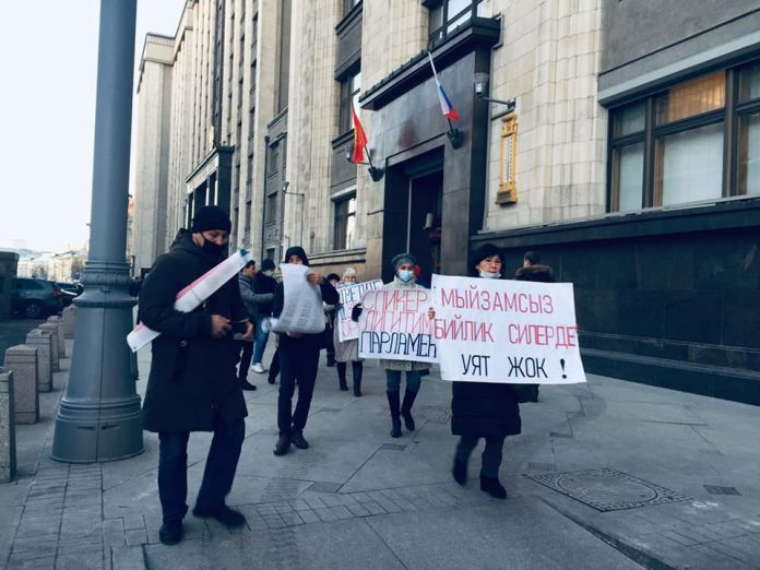 Бүгүн, 7-декабрда бир нече кыргыз жарандары Москвадагы Мамлекеттик Думанын имаратынын жанынан кыска мөөнөттүү жөө жүрүш уюштурушту. Ал жакта спикер Талант Мамытов орусиялык кесиптеши менен жолугушуусу керек болчу.