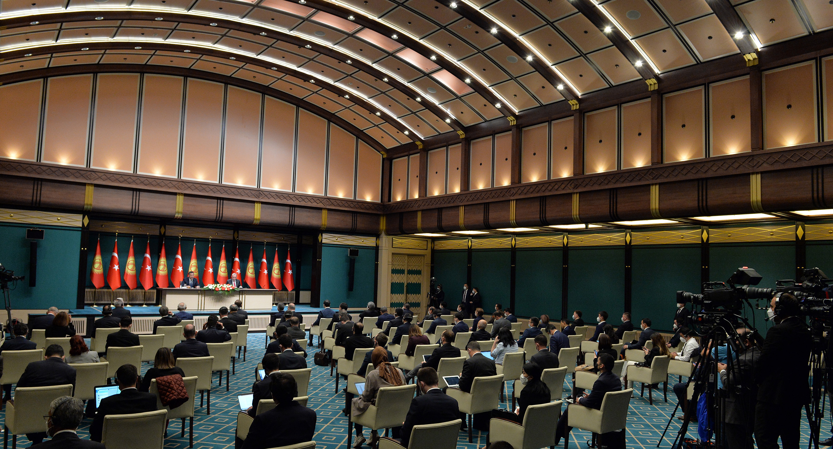 «Кыргызстан менен соода жүгүртүүнүн көлөмү 507 миллион долларды түзөт. Былтыркы эпидемияга карабай бул көрсөткүч олуттуу түрдө төмөндөгөн жок. Бирок биздин потенциалыбыз алда канча жогору деп эсептейбиз. Бул көрүнүп турат. Биз өлкөлөр ортосундагы соода жүгүртүүнү 1 миллиард АКШ долларына чейин жеткирүү боюнча конкреттүү чараларды көрүү жөнүндө макулдаштык», - деди түрк лидери.