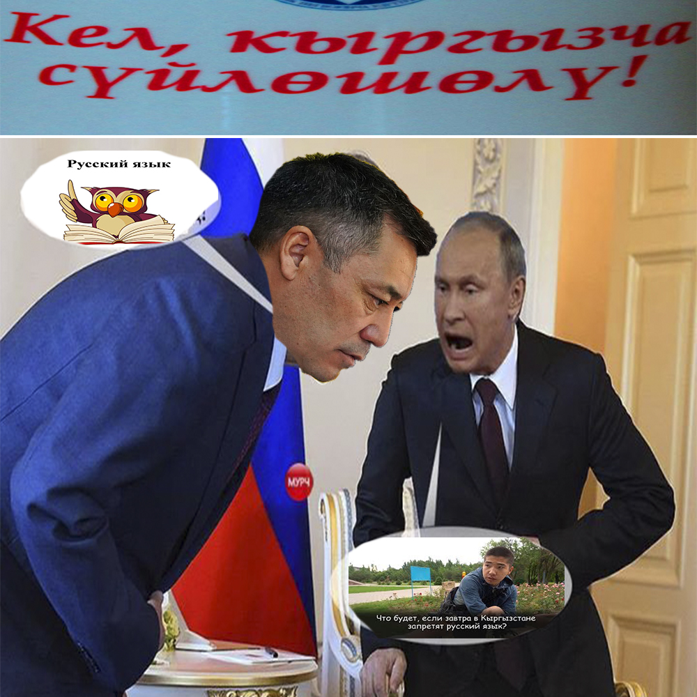 Мамлекет башына келгенден беш ай өткөн соң Садыр Жапаров Москвага иш сапары менен барып Владимир Путин менен жолугушту. Буга чейин бир ирет Тышкы иштер министри Руслан Казакбаев иш сапары менен барып пресс-конференцияда кыргызча суроо берген журналистке кыргызча жооп бере койом деп, жыландын куйругун басып алган. Орусия тараптан сегиз орун басарлуу финансы министрине 623 млн рубль берерин айтылды. Ал эми Путин Жапаров менен жолукканда көп нерседен буйтап өтүп, орус тилинин Кыргызстандагы статусу тууралуу кеп кылып, бизде орус тилинин статусун мамлекеттик тил катары сактап калганына ыраазычылыгын билдирип, келечек пландарында орус тилин терең өздөштүрүү мүмкүнчүлүгүн түзөрүн баса белгиледи.