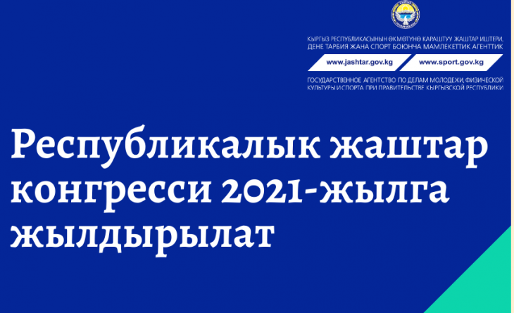 Кыргызстандагы эпидемиологиялык кырдаалга байланыштуу 2020-жылдын 10-ноябрында өтө турган Республикалык жаштар конгресси 2021-жылга жылдырылат. Бул тууралуу Жаштар иштери, дене тарбия жана спорт боюнча мамлекеттик агенттигинен билдиришти.
